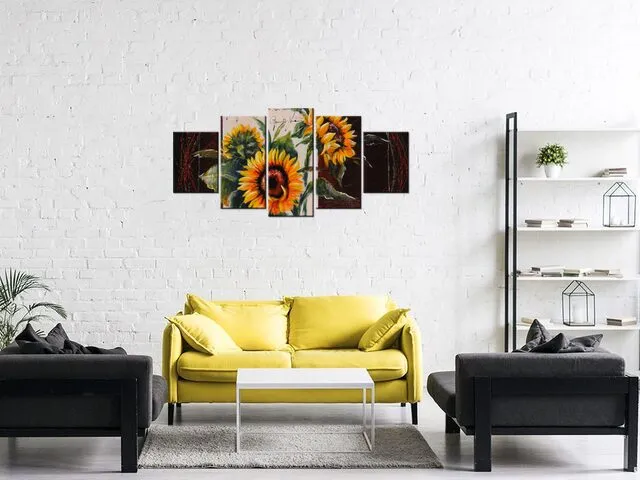 RM2429A_5H Moderný obraz maľovaný na plátne Slnečnice inak |
