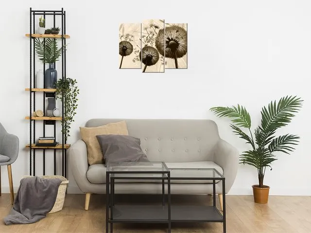 Úvod » Obrazy » Obrazy na plátne » Kvety » Moderný obraz na plátne Púpavy v béžovej