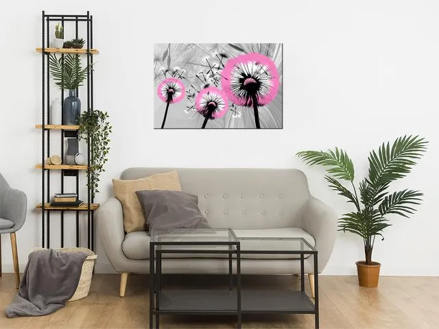 Úvod » Obrazy » Obrazy na plátne » Kvety » Moderný obraz na plátne Púpavy v jemnej ružovej