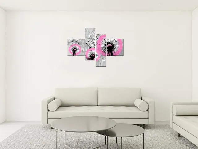 Úvod » Obrazy » Obrazy na plátne » Kvety » Moderný obraz na plátne Púpavy v jemnej ružovej