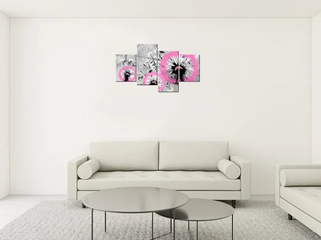 Úvod » Obrazy » Obrazy na plátne » Kvety » Moderný obraz na plátne Púpavy v jemnej ružovej
