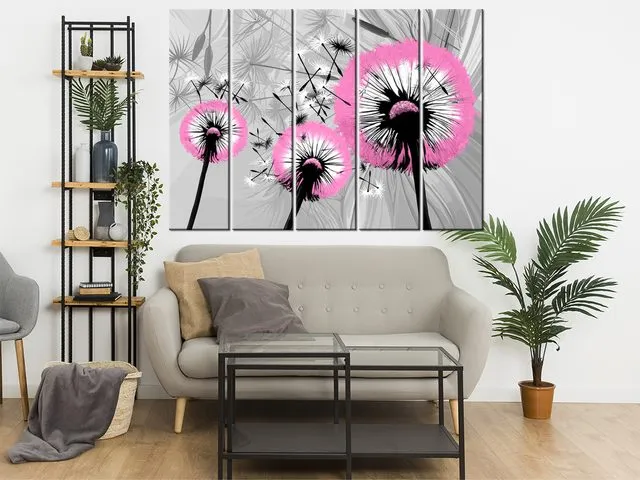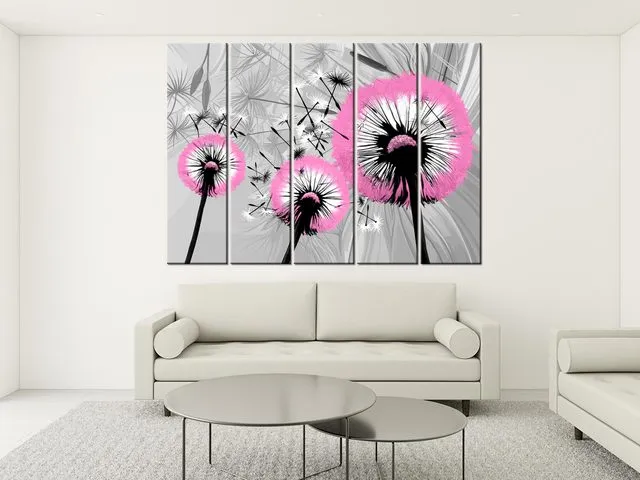 Úvod » Obrazy » Obrazy na plátne » Kvety » Moderný obraz na plátne Púpavy v jemnej ružovej