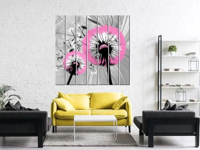 Úvod » Obrazy » Obrazy na plátne » Kvety » Moderný obraz na plátne Púpavy v jemnej ružovej