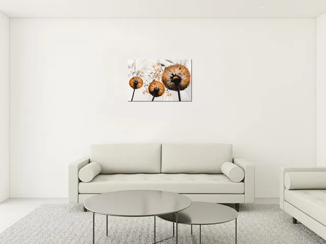 Úvod » Obrazy » Obrazy na plátne » Kvety » Moderný obraz na plátne Púpavy v oranžovej farbe