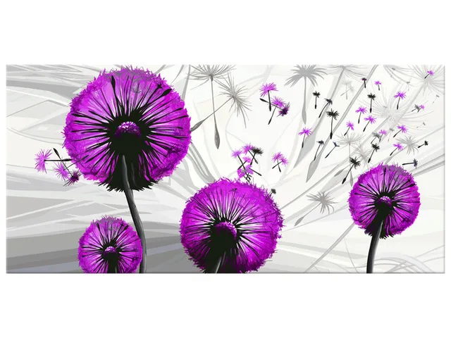 Úvod » Obrazy » Obrazy na plátne » Kvety » Moderný obraz na plátne Púpavy vo fialovej