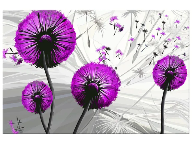 Úvod » Obrazy » Obrazy na plátne » Kvety » Moderný obraz na plátne Púpavy vo fialovej