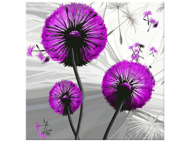 Úvod » Obrazy » Obrazy na plátne » Kvety » Moderný obraz na plátne Púpavy vo fialovej