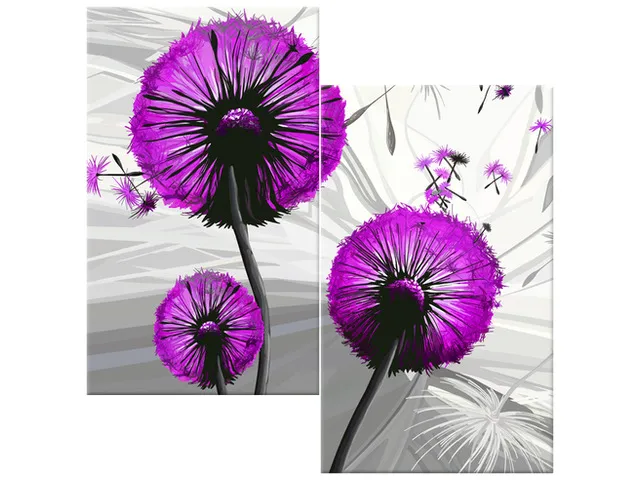 Úvod » Obrazy » Obrazy na plátne » Kvety » Moderný obraz na plátne Púpavy vo fialovej