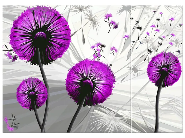 Úvod » Obrazy » Obrazy na plátne » Kvety » Moderný obraz na plátne Púpavy vo fialovej
