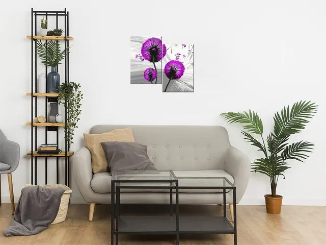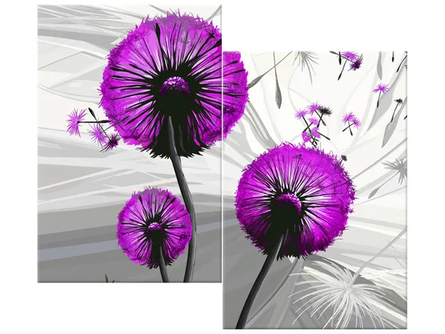 Úvod » Obrazy » Obrazy na plátne » Kvety » Moderný obraz na plátne Púpavy vo fialovej