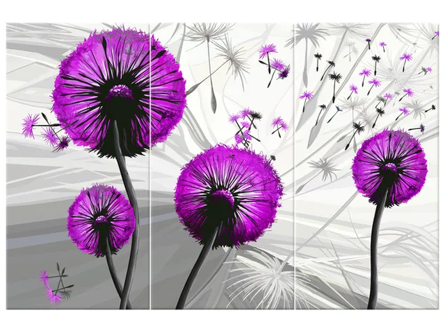 Úvod » Obrazy » Obrazy na plátne » Kvety » Moderný obraz na plátne Púpavy vo fialovej