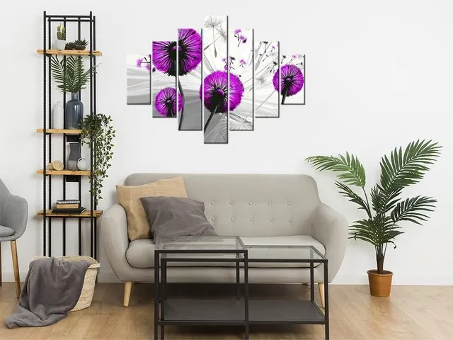 Úvod » Obrazy » Obrazy na plátne » Kvety » Moderný obraz na plátne Púpavy vo fialovej