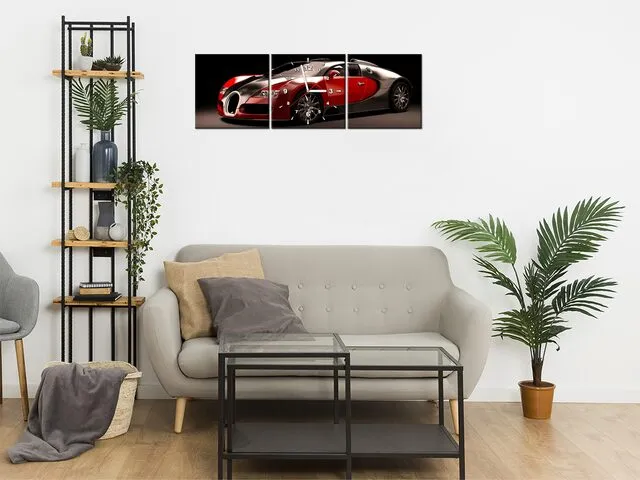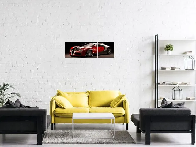 ZP2376A_3V Moderný obraz na plátne s hodinami Červené Bugatti Veyron |