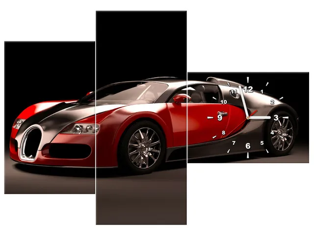 Moderný obraz na plátne s hodinami Červené Bugatti Veyron