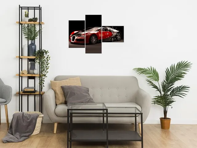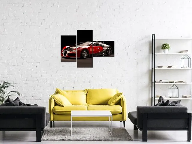 Úvod » Obrazy » Obrazy s hodinami » Moderný obraz na plátne s hodinami Červené Bugatti Veyron