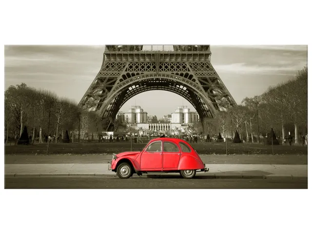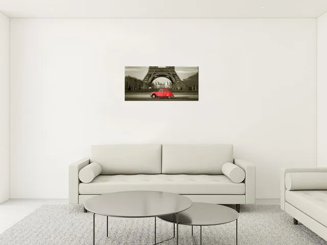 Úvod » Obrazy » Obrazy na plátne » Príroda » Moderný obraz na stenu Červené auto pred Eiffelovkou