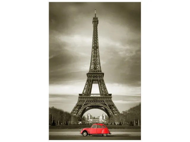 Barion Pixel Moderný obraz na stenu Červené auto pred Eiffelovkou