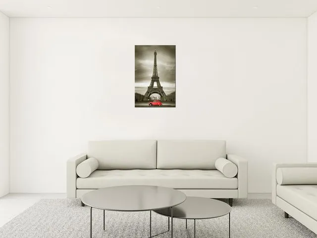 Úvod » Obrazy » Obrazy na plátne » Príroda » Moderný obraz na stenu Červené auto pred Eiffelovkou