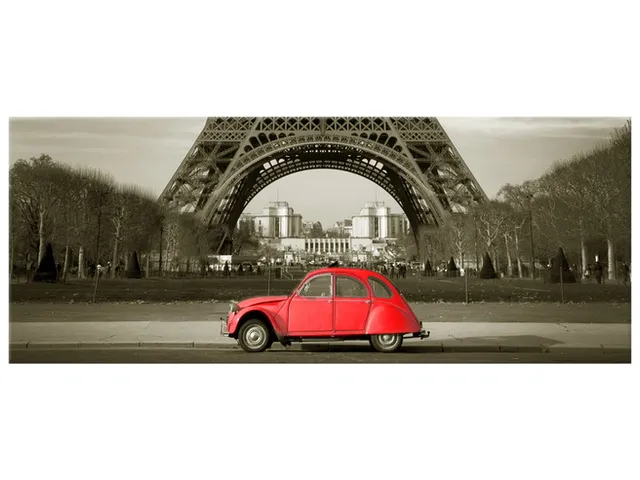 3533A_1M Moderný obraz na stenu Červené auto pred Eiffelovkou |