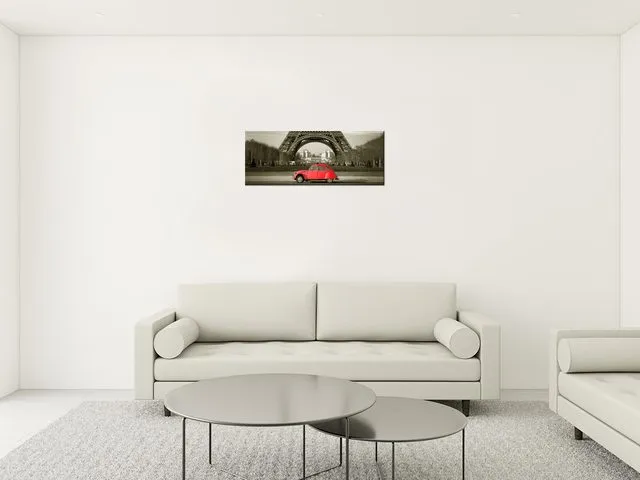 Úvod » Obrazy » Obrazy na plátne » Príroda » Moderný obraz na stenu Červené auto pred Eiffelovkou