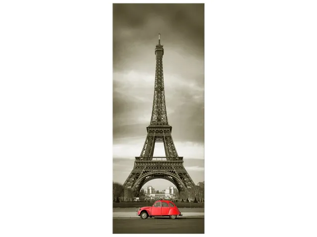 Úvod » Obrazy » Obrazy na plátne » Príroda » Moderný obraz na stenu Červené auto pred Eiffelovkou