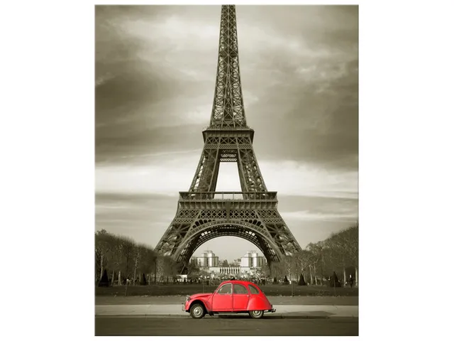 Barion Pixel Moderný obraz na stenu Červené auto pred Eiffelovkou