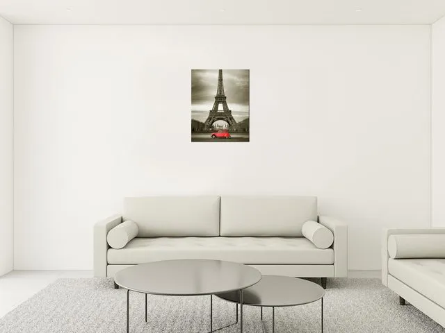 Úvod » Obrazy » Obrazy na plátne » Príroda » Moderný obraz na stenu Červené auto pred Eiffelovkou
