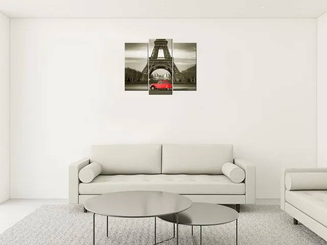 3533A_3H Moderný obraz na stenu Červené auto pred Eiffelovkou |