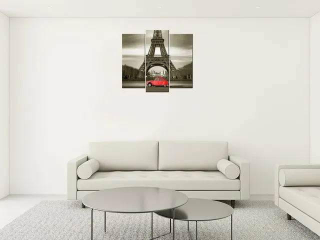 3533A_3F Moderný obraz na stenu Červené auto pred Eiffelovkou |