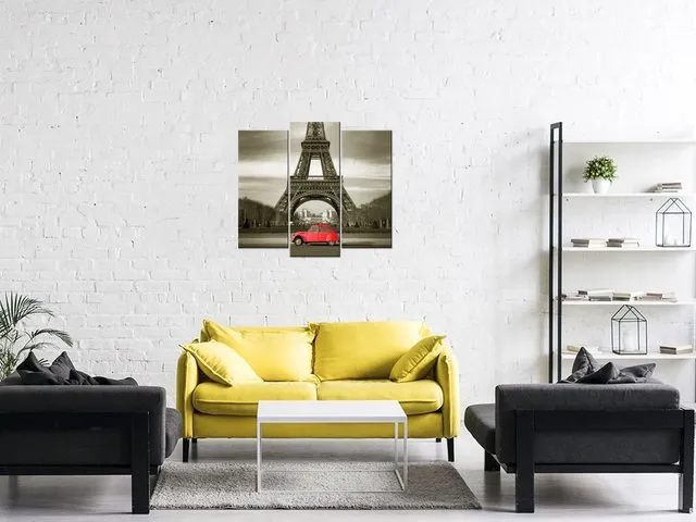 3533A_3H Moderný obraz na stenu Červené auto pred Eiffelovkou |