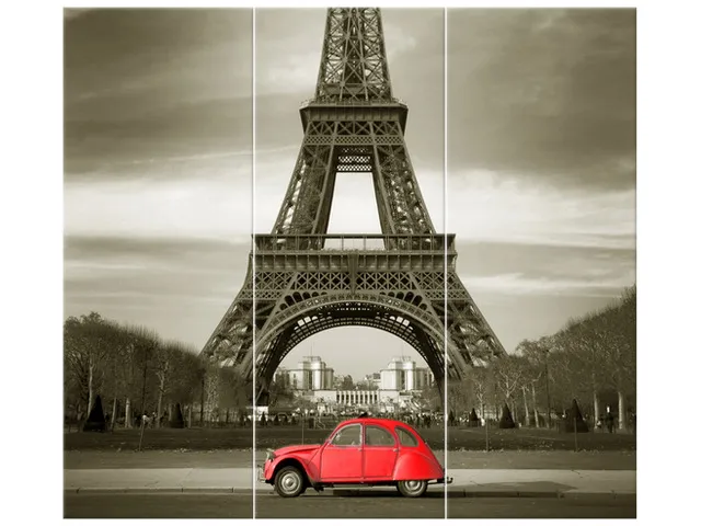 3533A_3V Moderný obraz na stenu Červené auto pred Eiffelovkou |