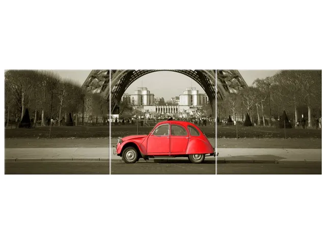 Barion Pixel Moderný obraz na stenu Červené auto pred Eiffelovkou