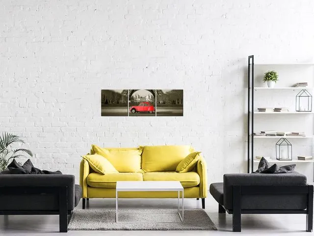 Úvod » Obrazy » Obrazy na plátne » Príroda » Moderný obraz na stenu Červené auto pred Eiffelovkou
