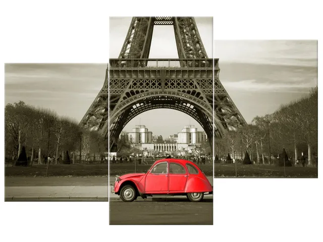 Úvod » Obrazy » Obrazy na plátne » Príroda » Moderný obraz na stenu Červené auto pred Eiffelovkou