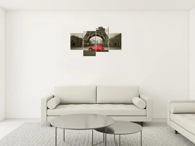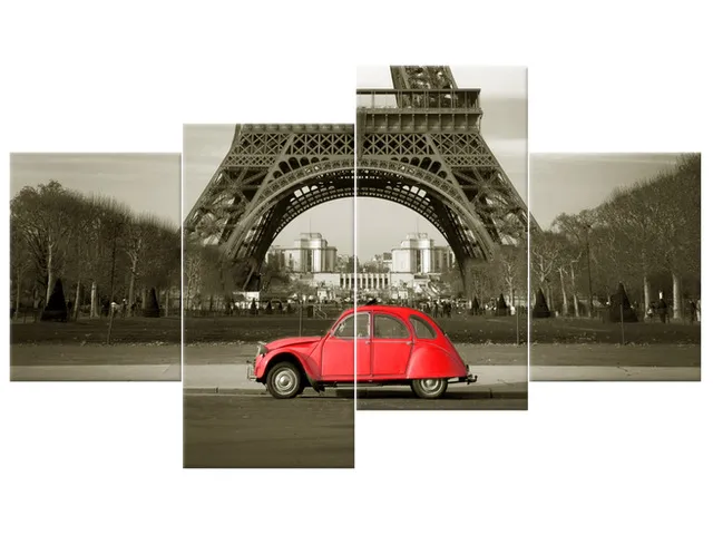 3533A_4B Moderný obraz na stenu Červené auto pred Eiffelovkou |