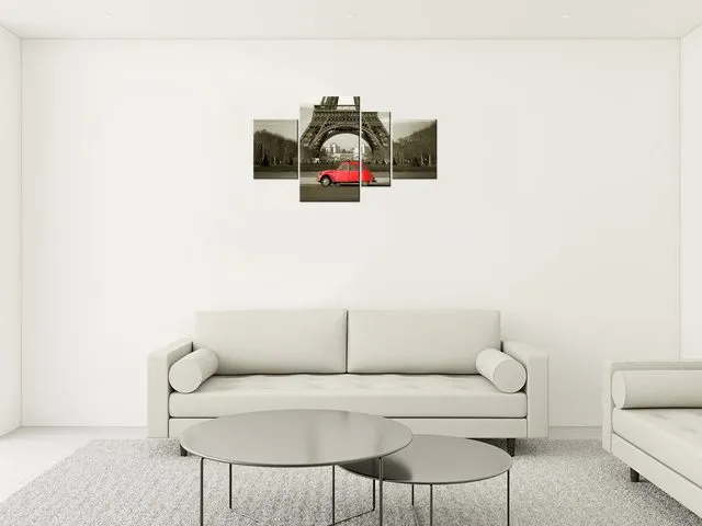 3533A_4H Moderný obraz na stenu Červené auto pred Eiffelovkou |