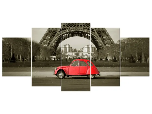 3533A_5H Moderný obraz na stenu Červené auto pred Eiffelovkou |