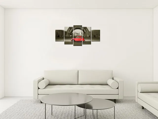 3533A_5L Moderný obraz na stenu Červené auto pred Eiffelovkou |