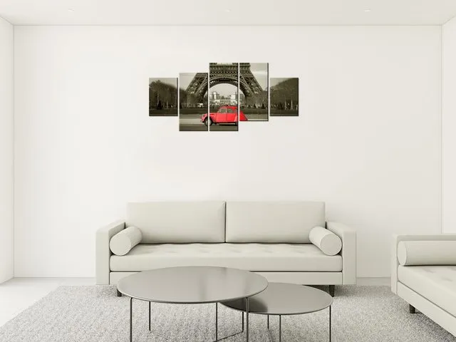 3533A_5F Moderný obraz na stenu Červené auto pred Eiffelovkou |
