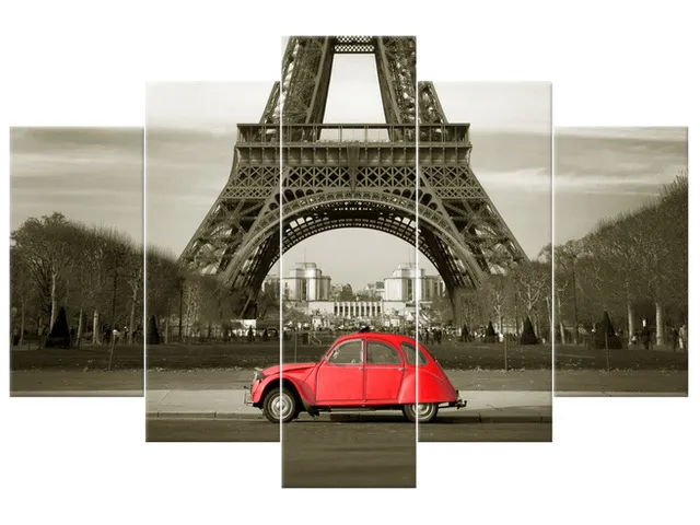 Úvod » Obrazy » Obrazy na plátne » Príroda » Moderný obraz na stenu Červené auto pred Eiffelovkou