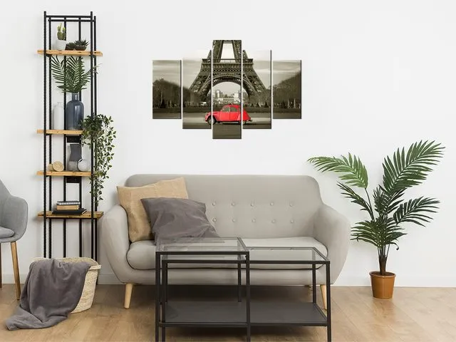 3533A_5L Moderný obraz na stenu Červené auto pred Eiffelovkou |