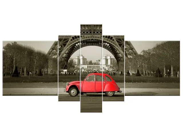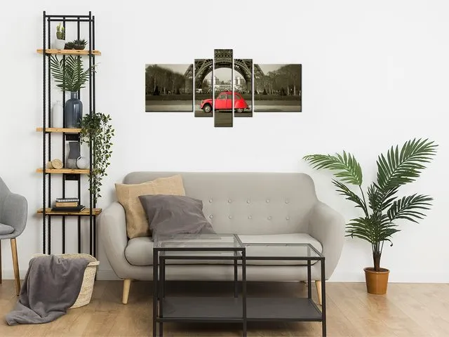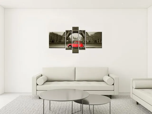 Úvod » Obrazy » Obrazy na plátne » Príroda » Moderný obraz na stenu Červené auto pred Eiffelovkou