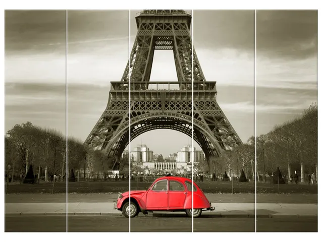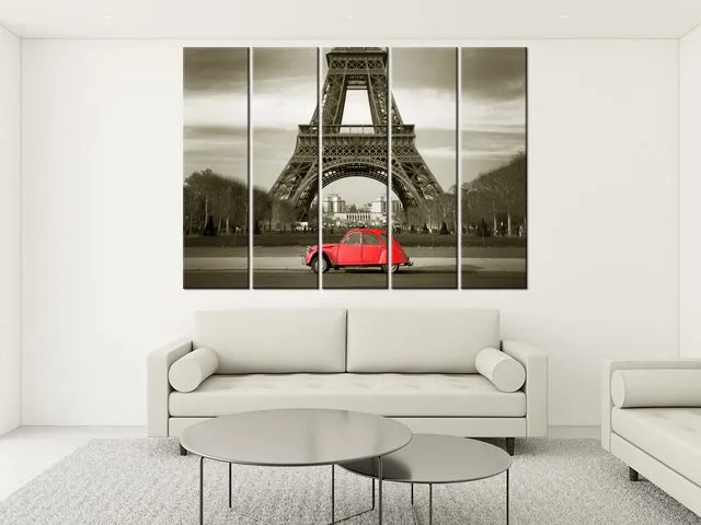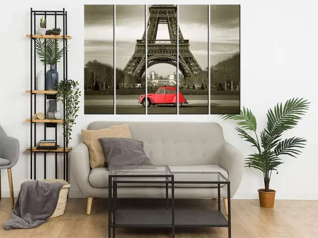 Úvod » Obrazy » Obrazy na plátne » Príroda » Moderný obraz na stenu Červené auto pred Eiffelovkou