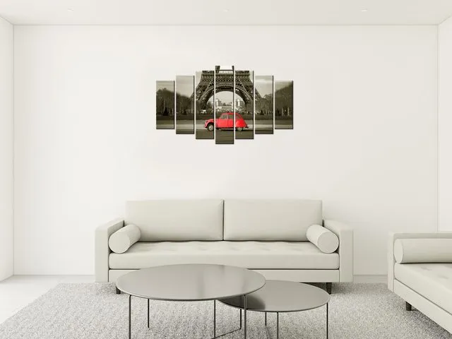 3533A_5F Moderný obraz na stenu Červené auto pred Eiffelovkou |