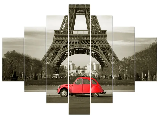 Barion Pixel Moderný obraz na stenu Červené auto pred Eiffelovkou