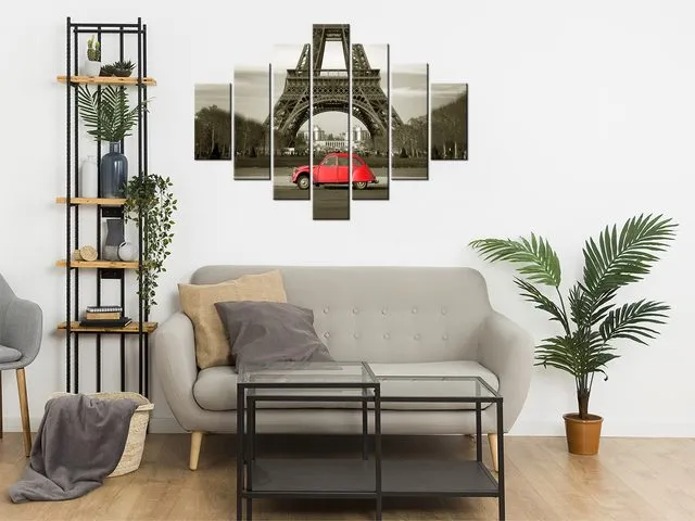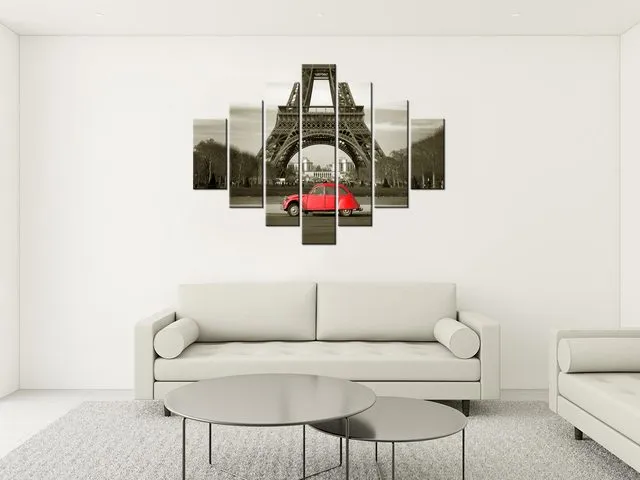 Úvod » Obrazy » Obrazy na plátne » Príroda » Moderný obraz na stenu Červené auto pred Eiffelovkou