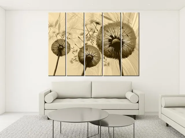 Úvod » Obrazy » Obrazy na plátne » Príroda » Moderný obraz na stenu Púpavy na krémovom pozadí