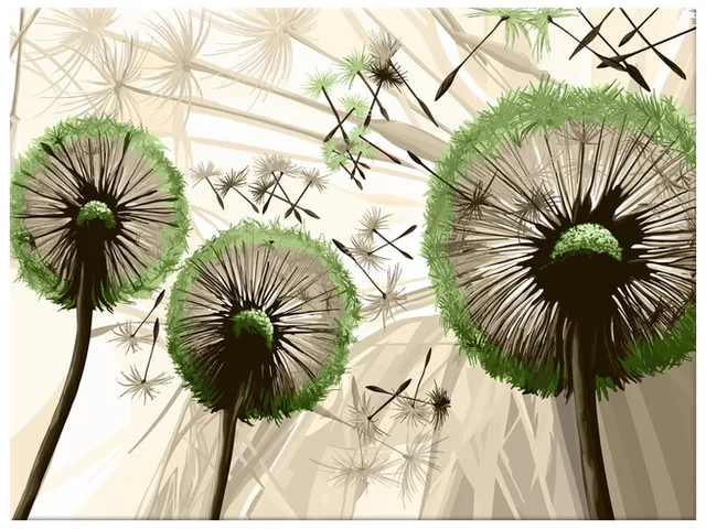 Úvod » Obrazy » Obrazy na plátne » Kvety » Moderný obraz na stenu Púpavy v zelenej