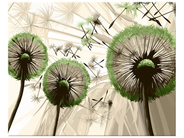 Úvod » Obrazy » Obrazy na plátne » Kvety » Moderný obraz na stenu Púpavy v zelenej