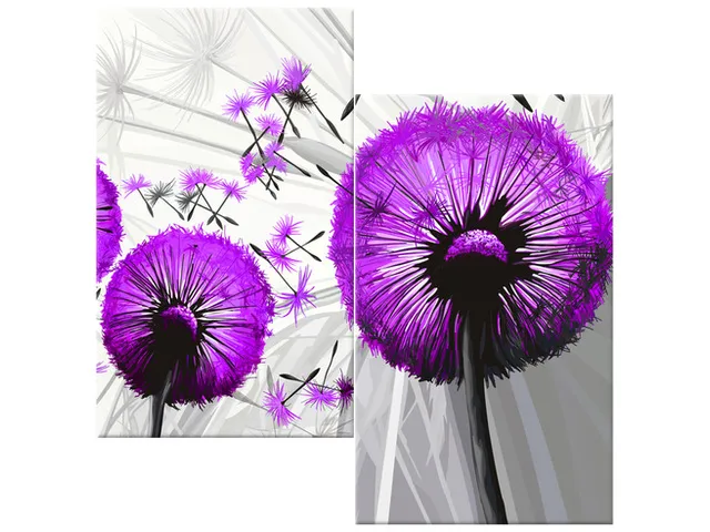 Úvod » Obrazy » Obrazy na plátne » Kvety » Moderný obraz na stenu Púpavy vo fialovej